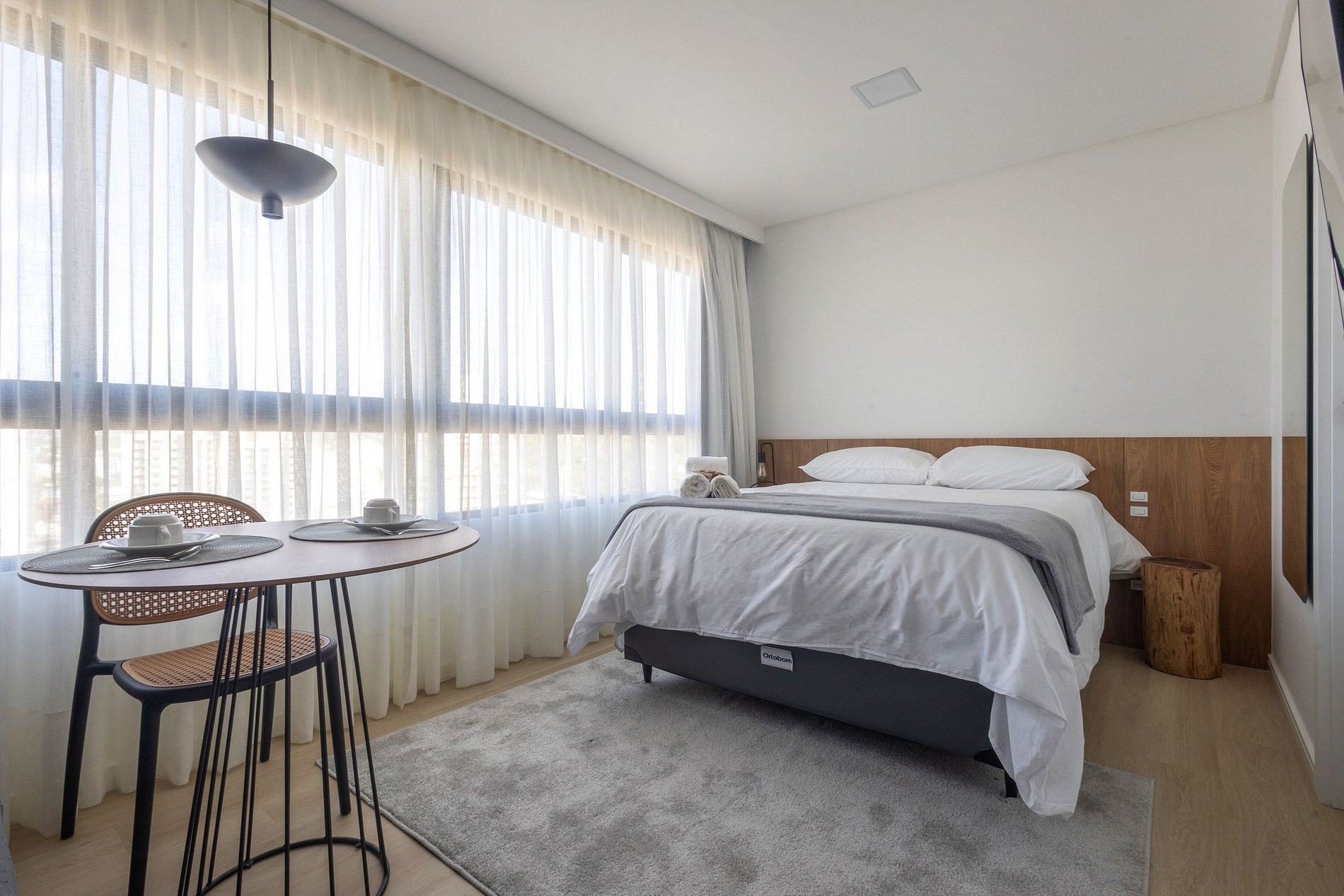 O espaço é moderno, funcional e bem iluminado, com Wi-Fi , ambiente para trabalho, ar-condicionado e vaga de garagem, garantindo uma estadia tranquila e produtiva.