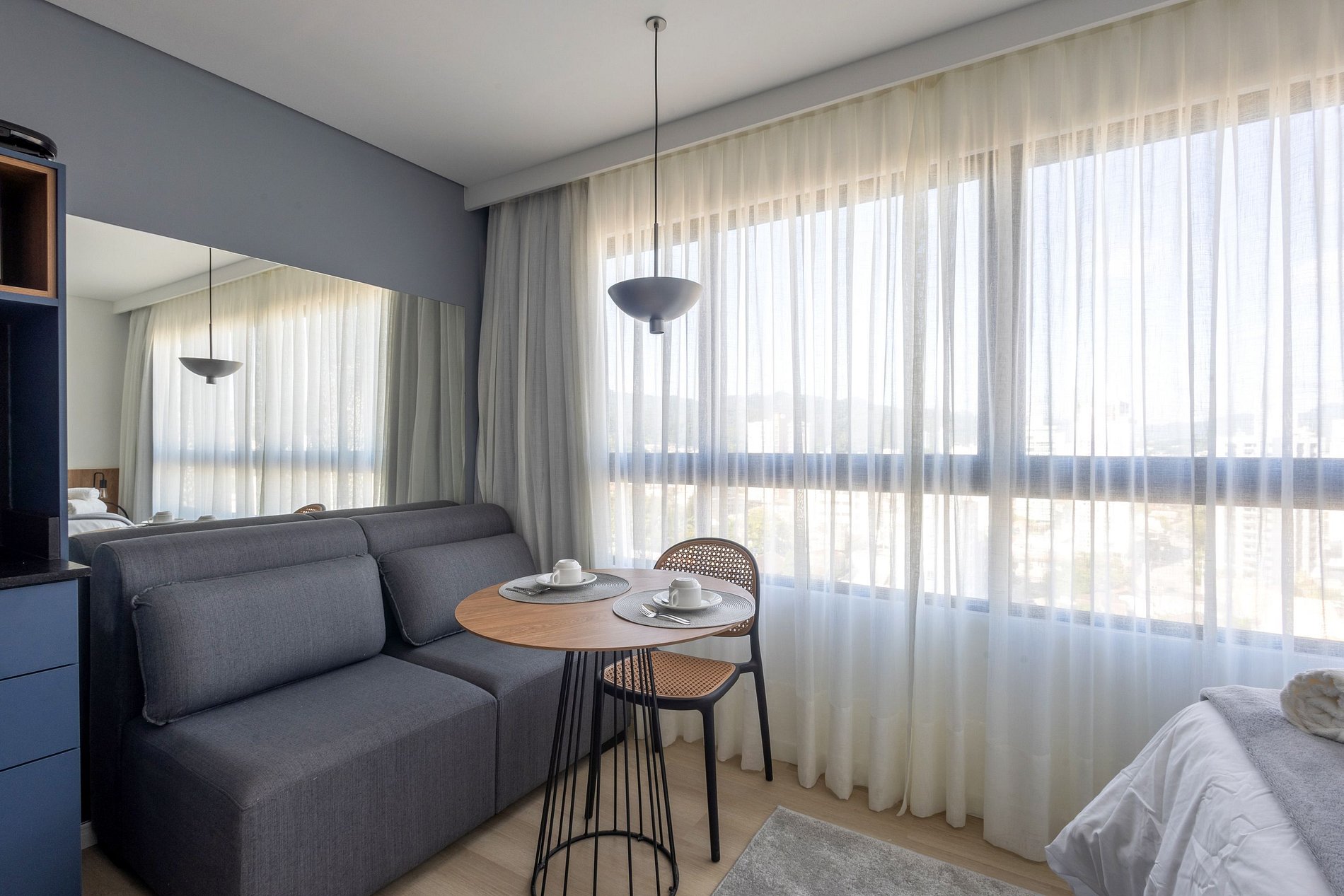 Hospede-se com conforto, praticidade e estilo neste loft de alto padrão, totalmente mobiliado.