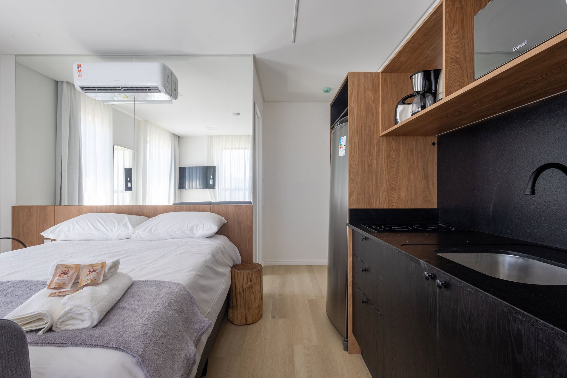 Hospede-se com conforto, praticidade e estilo neste loft de alto padrão, totalmente mobiliado.