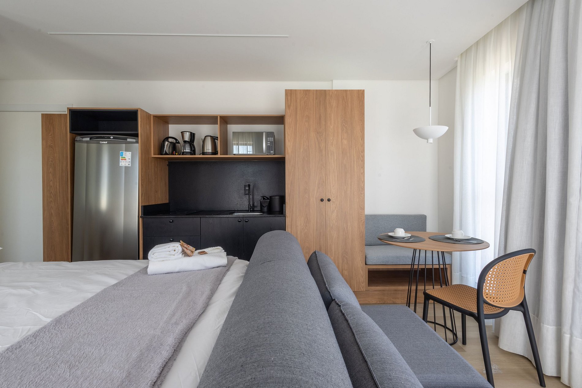 O espaço é moderno, funcional e bem iluminado, com Wi-Fi , ambiente para trabalho, ar-condicionado e vaga de garagem, garantindo uma estadia tranquila e produtiva.