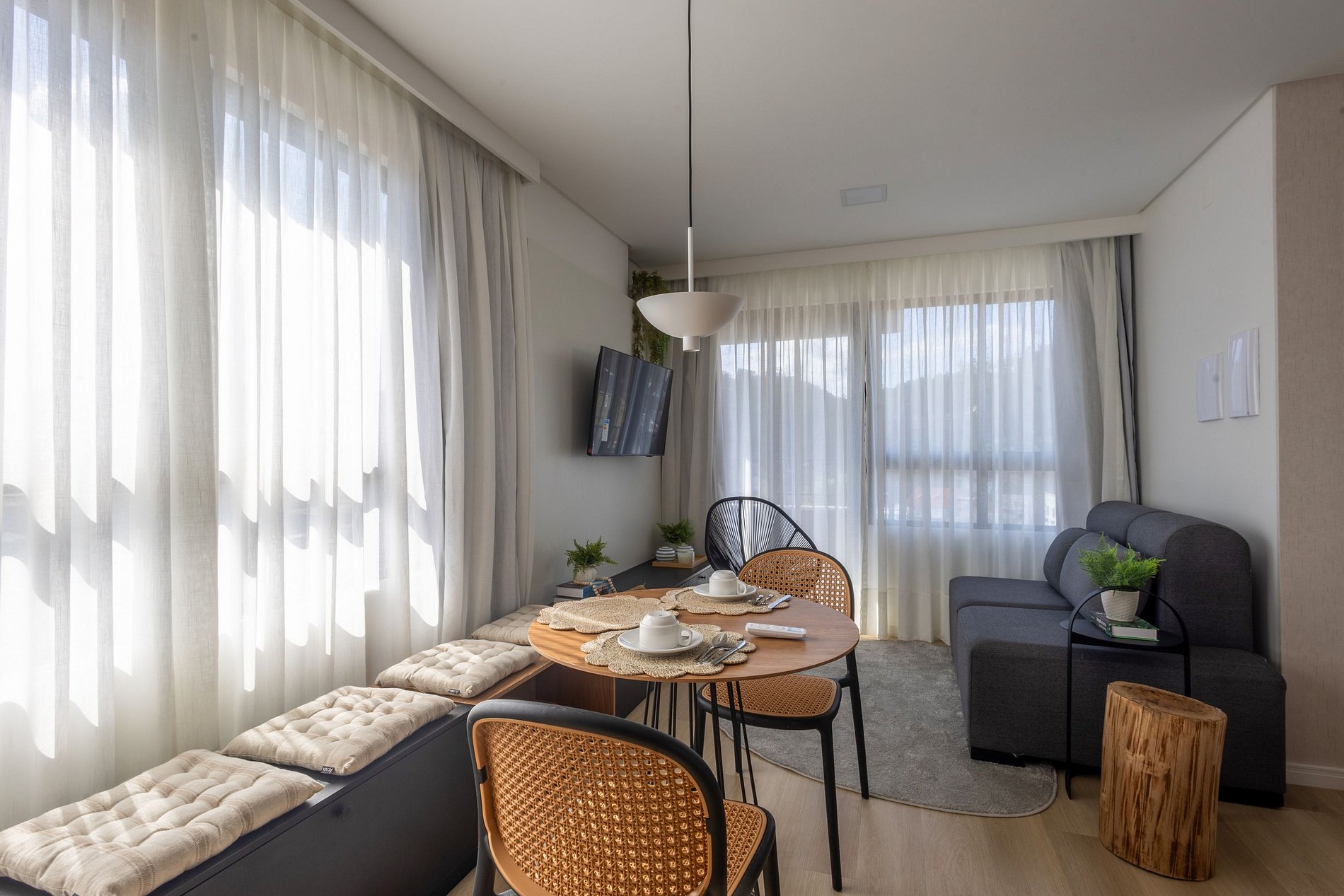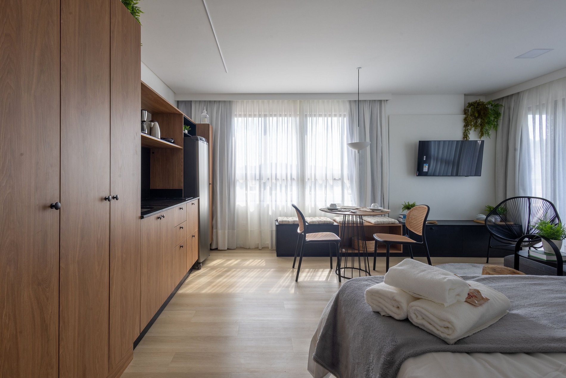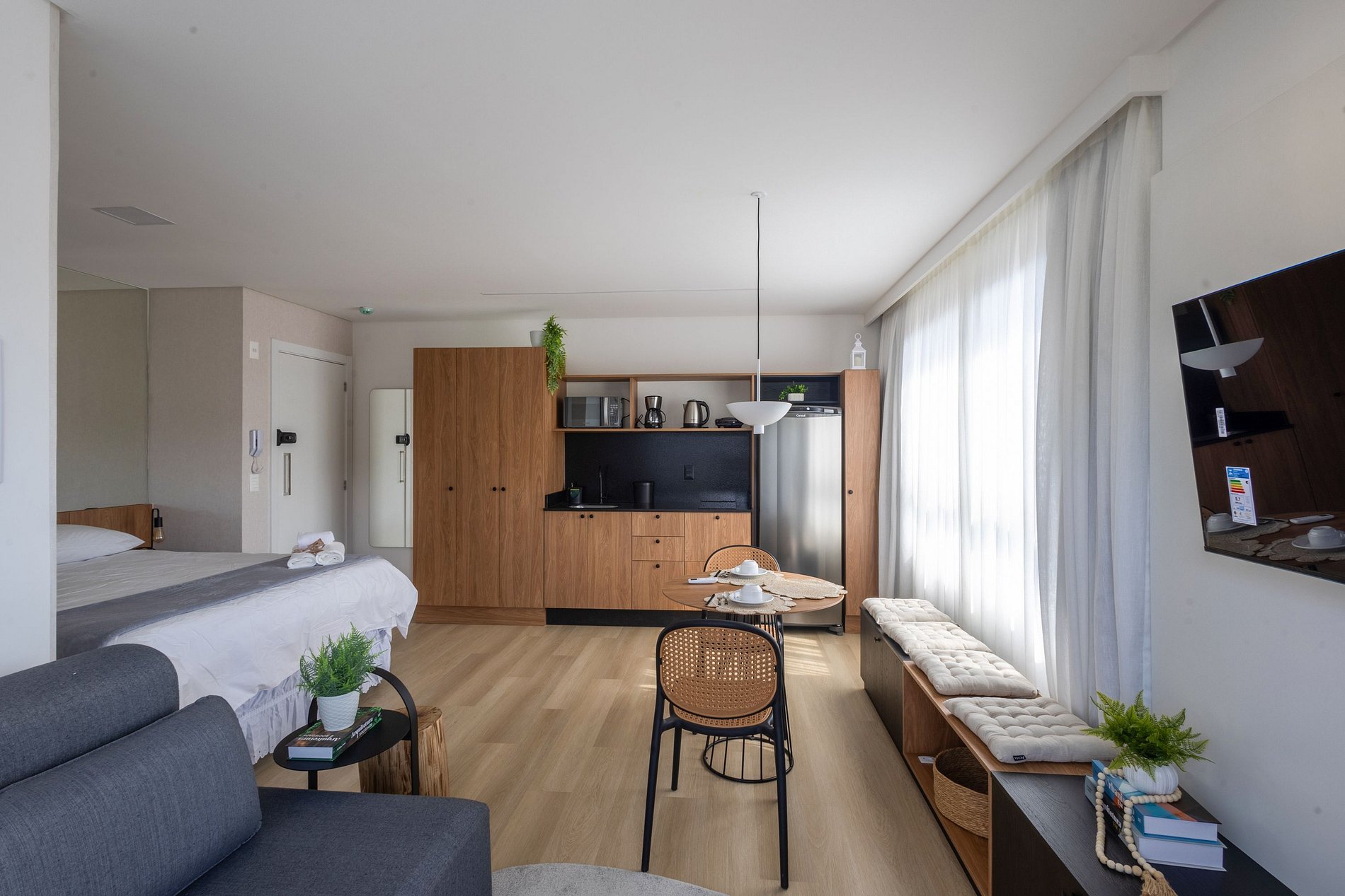 O espaço é moderno, funcional e bem iluminado, com Wi-Fi , ambiente para trabalho, ar-condicionado e vaga de garagem, garantindo uma estadia tranquila e produtiva.