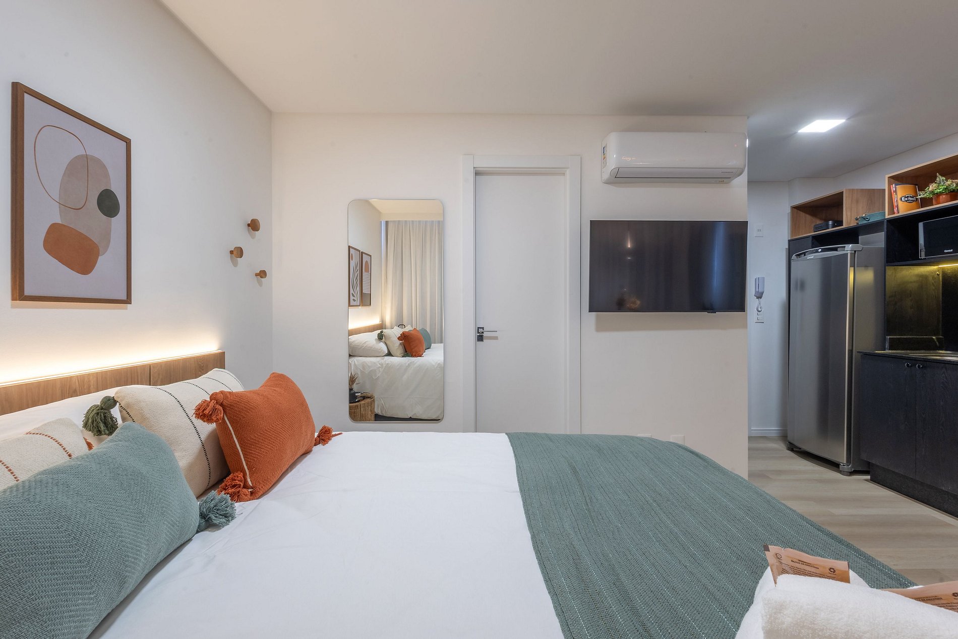 O espaço é moderno, funcional e bem iluminado, com Wi-Fi , ambiente para trabalho, ar-condicionado e vaga de garagem, garantindo uma estadia tranquila e produtiva.