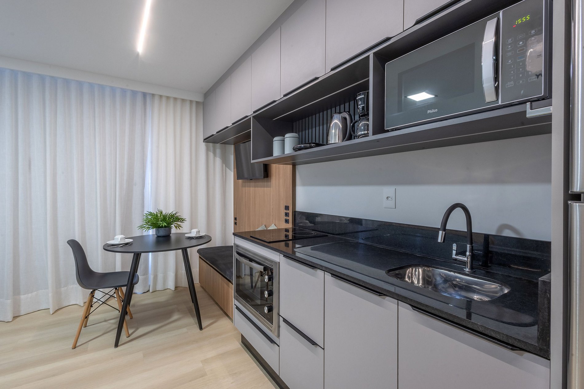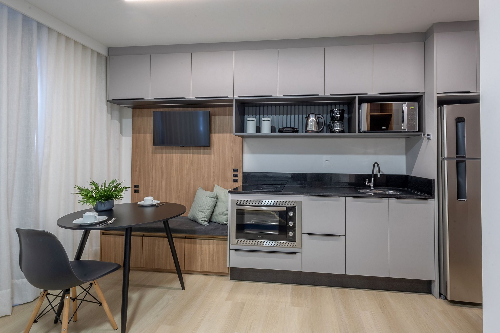 O espaço é moderno, funcional e bem iluminado, com Wi-Fi , ambiente para trabalho, ar-condicionado e vaga de garagem, garantindo uma estadia tranquila e produtiva.