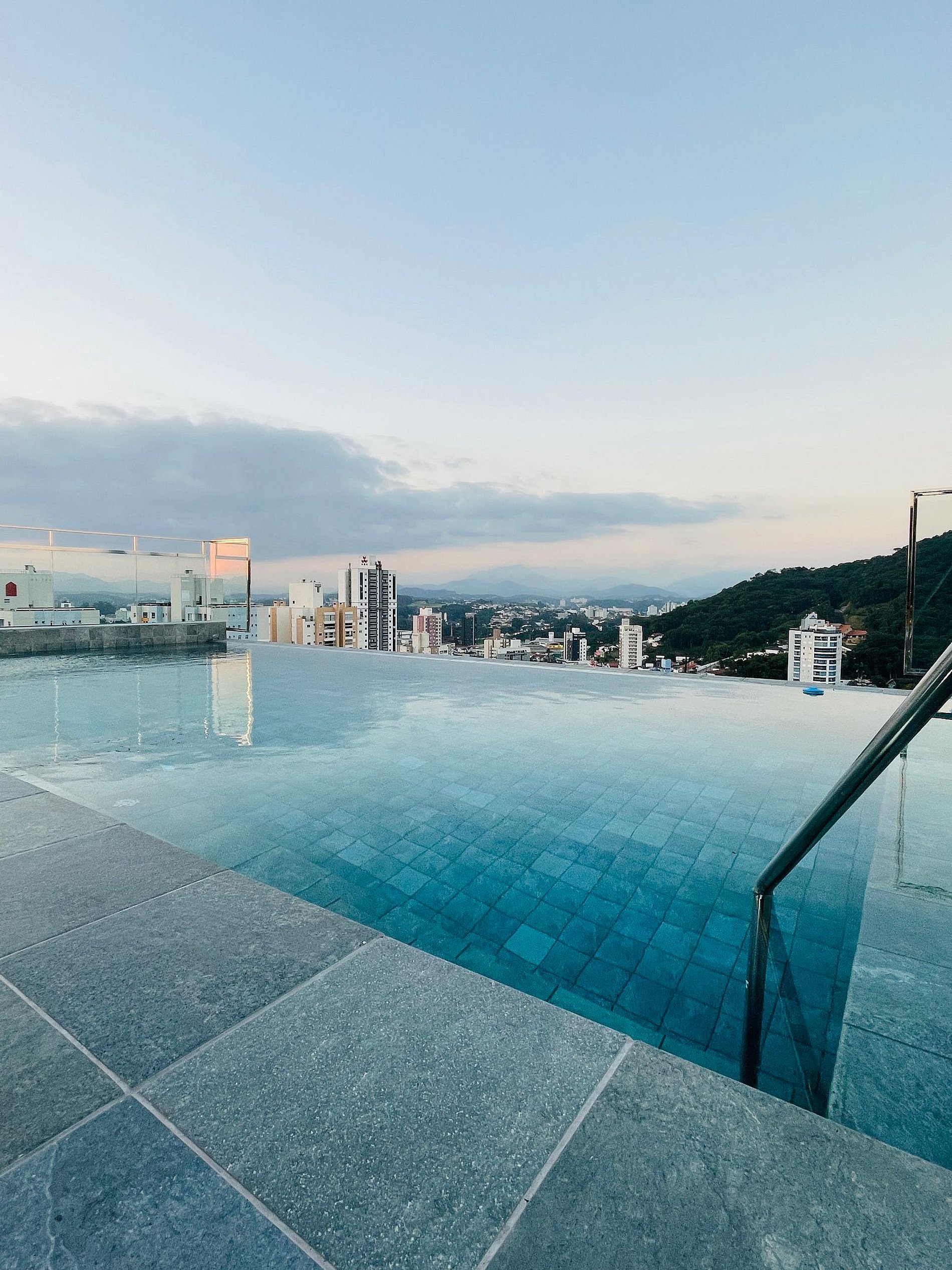 localização privilegiada próximo da FURB, padaria, restaurantes e mercado e 5 minutos da VILA GERMÂNICA - Piscina no Rooftop com Borda Infinita - Espaço Fitness - Lounge Coworking - Pub - Área de Lazer nos fundos - Mercadinho