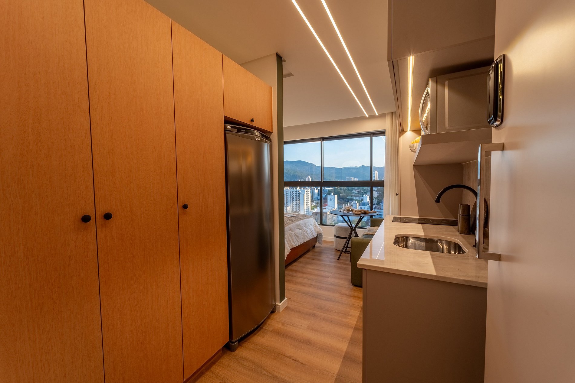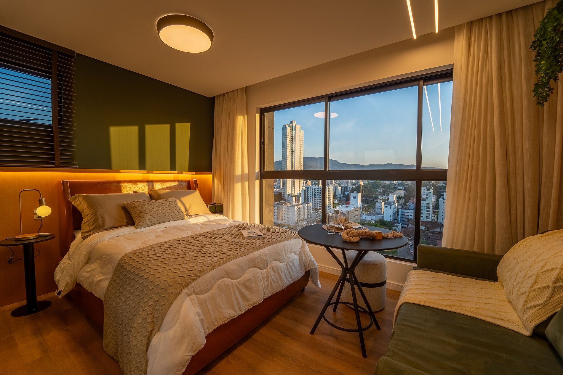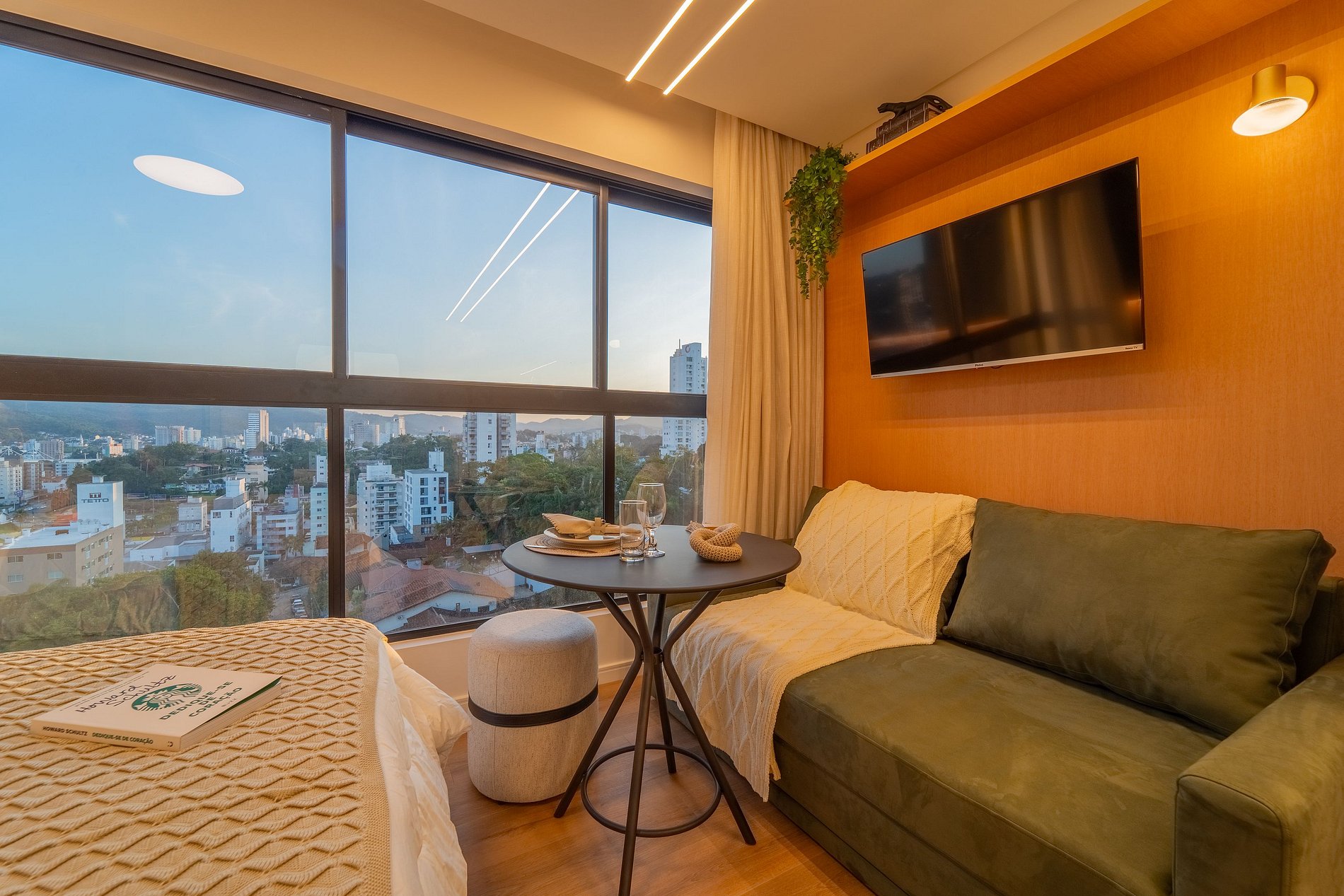 Excelente para casais e pessoas viajando sozinhas a lazer/trabalho. Localização privilegiada próximo da FURB, Padaria, restaurantes, mercado e 5 minutos da VILA GERMÂNICA - Piscina no Rooftop com Borda Infinita - Espaço Fitness - Lounge Coworking - Pub - Área de churrasqueira nos fundos - Mercadinho