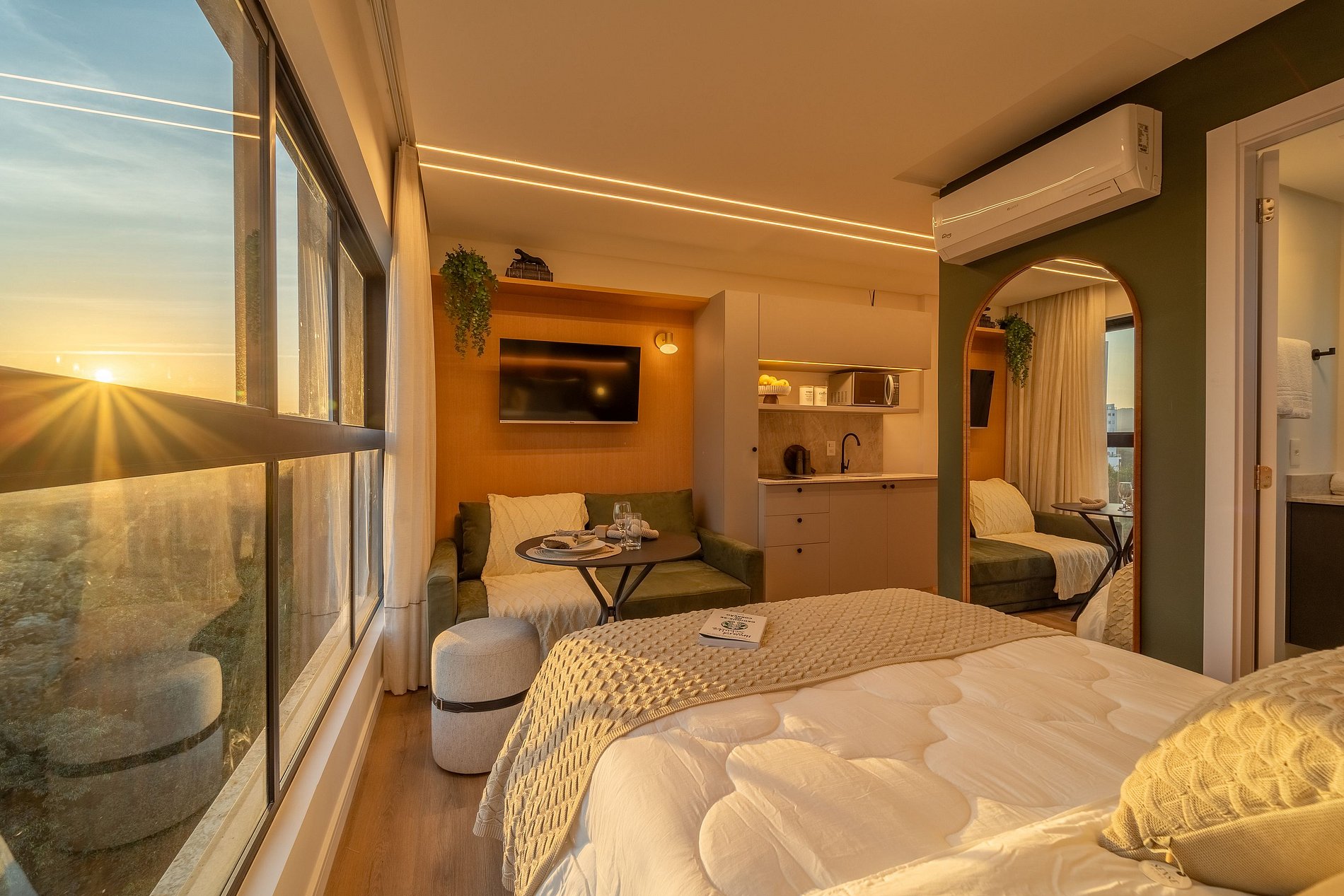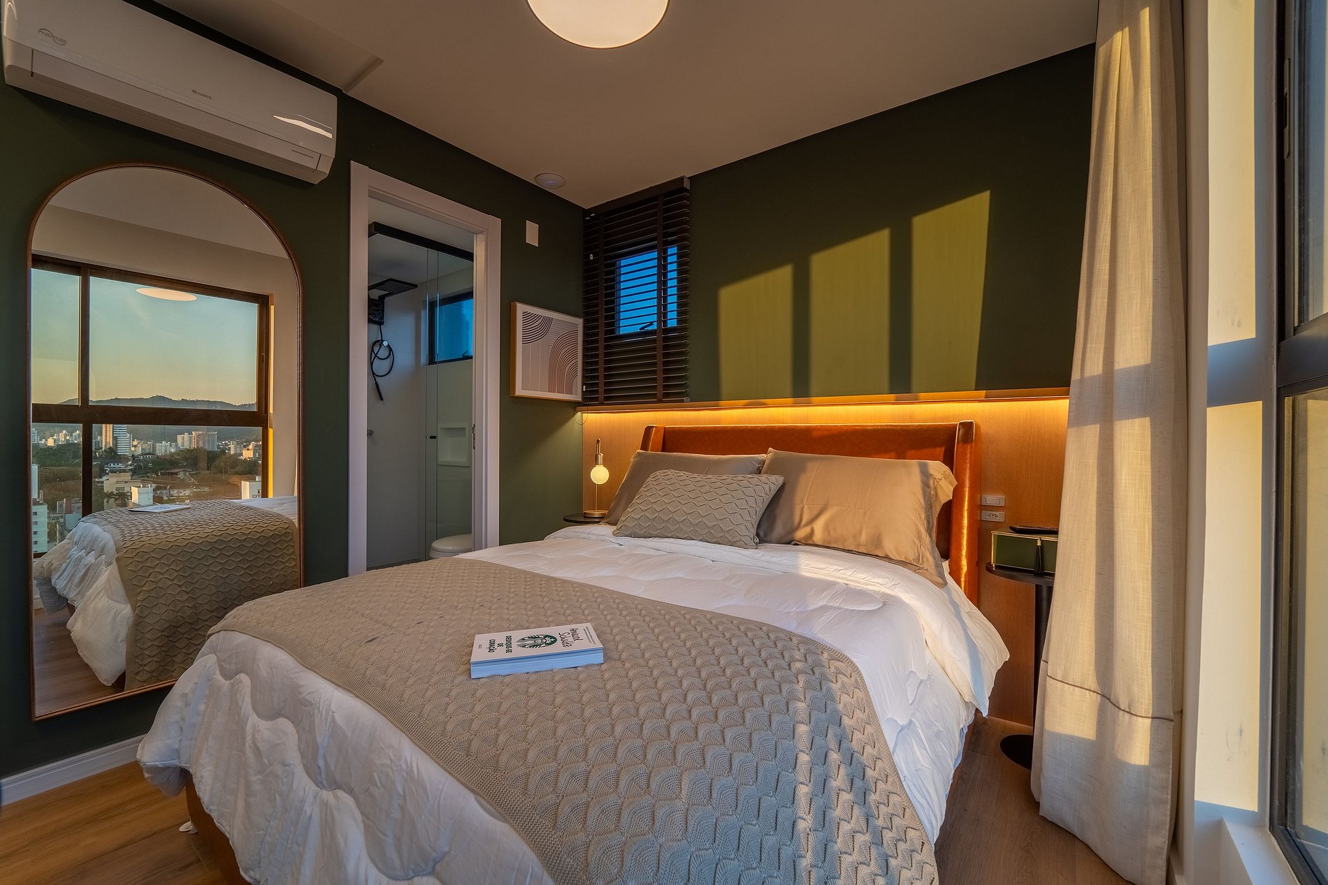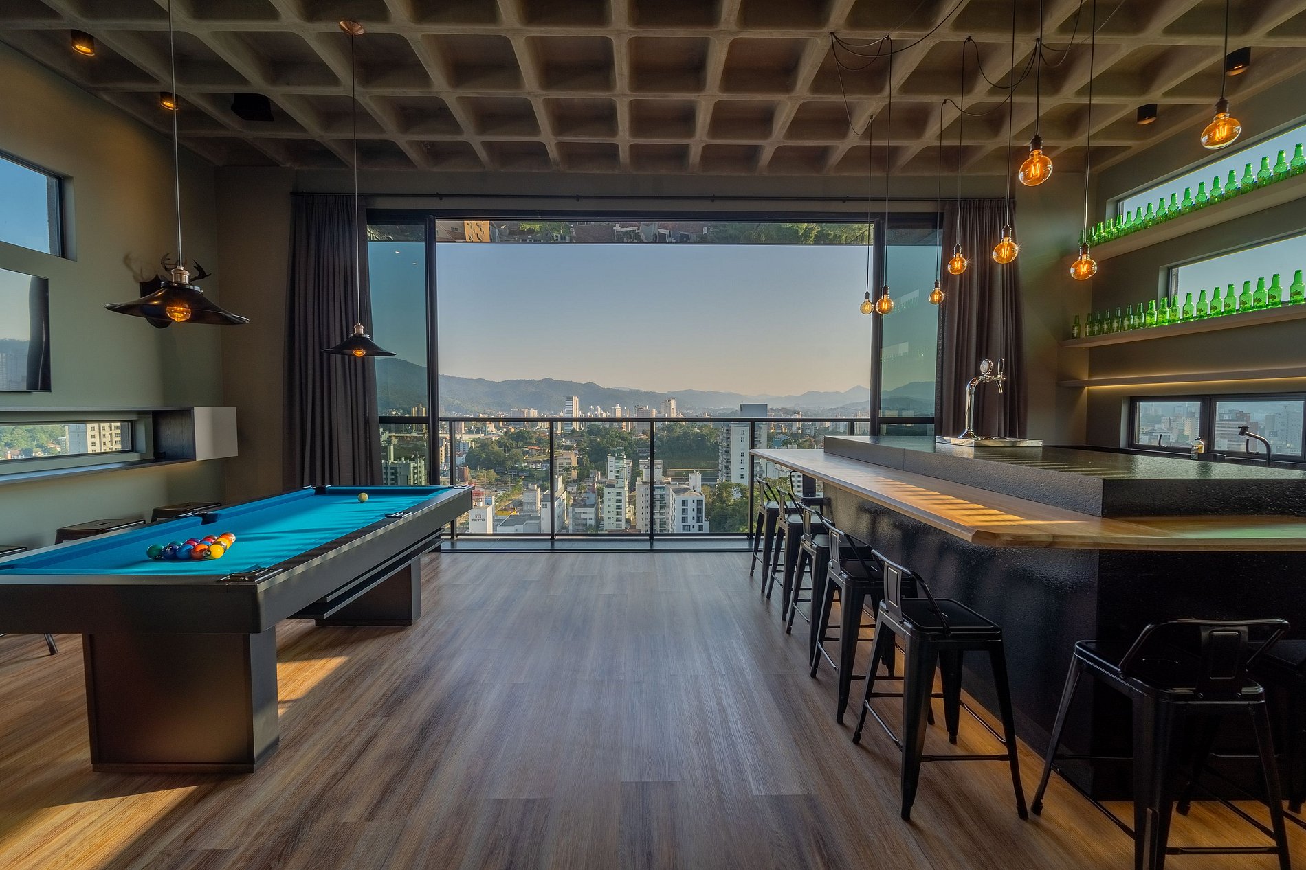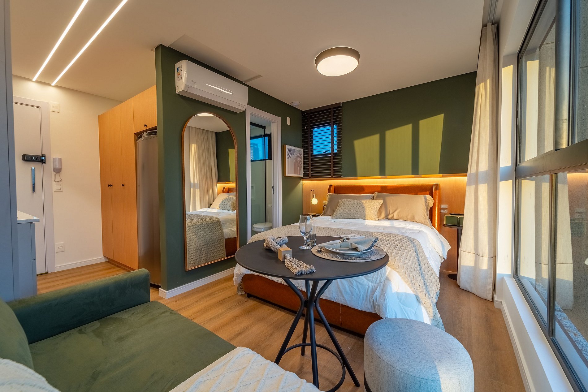 Excelente para casais e pessoas viajando sozinhas a lazer/trabalho. Localização privilegiada próximo da FURB, Padaria, restaurantes, mercado e 5 minutos da VILA GERMÂNICA - Piscina no Rooftop com Borda Infinita - Espaço Fitness - Lounge Coworking - Pub - Área de churrasqueira nos fundos - Mercadinho