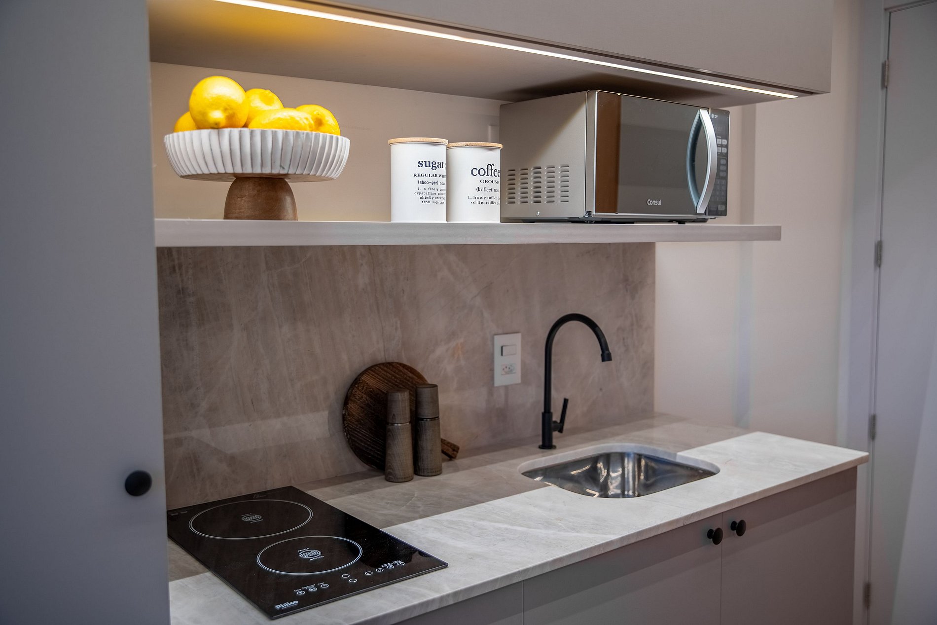 Acomodação contem uma cozinha, banheiro, ar-condicionado, TV, Wi-Fi.